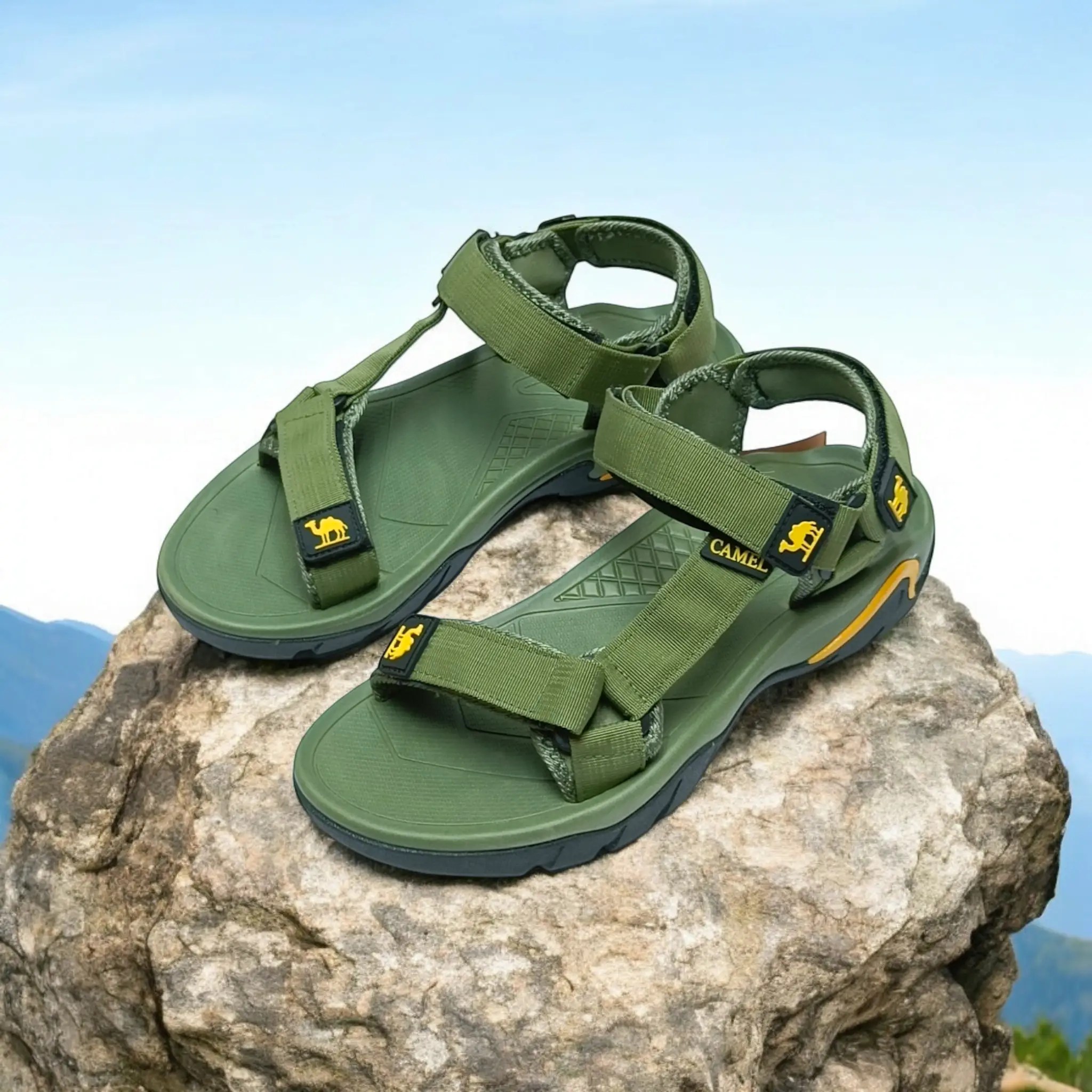 GreenColor Camel Men’s ThreeStrep Sandals